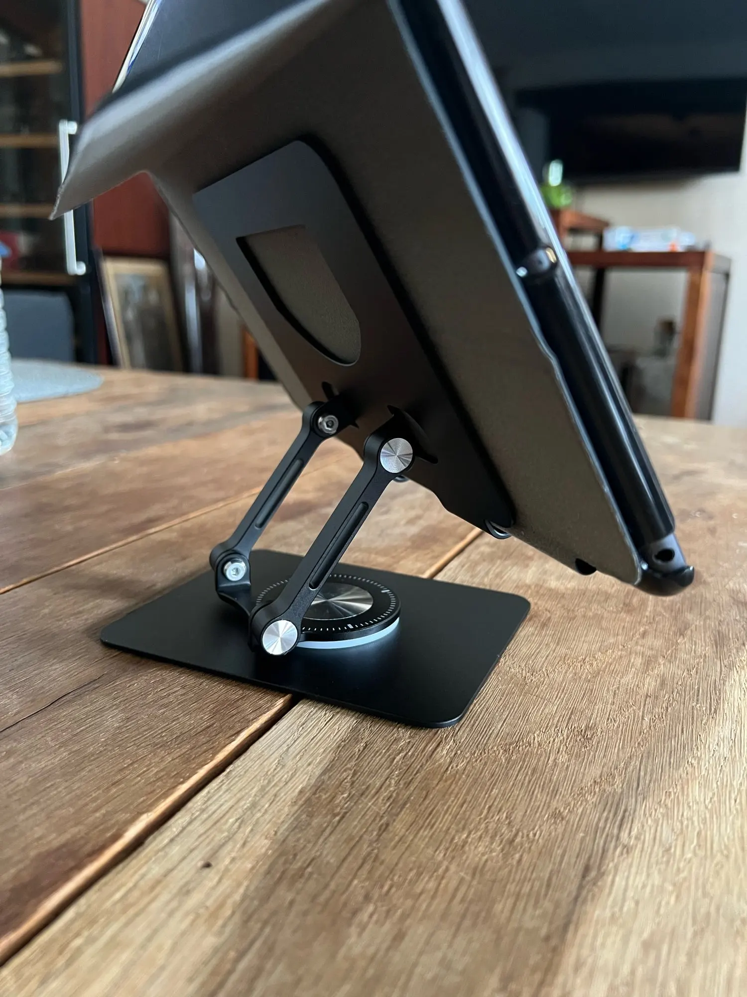 360u00b0 Rotation: Equipped with a large 360u00b0 rotating chassis. Two axles are connected to the base for more flexible rotation, and the stand allows you to rotate the tablet to any Angle.